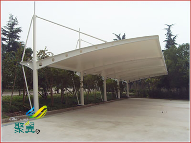 膜結構車棚是一種公用建筑物,這種產品的首要要求就是耐用穩固,膜結構車棚都是鋼構支撐柱,然后其上進行焊接等工藝加裝膜材料頂棚。如果是采用的聚碳酸酯材料作為頂棚的話,采用螺栓固定。相對于膜結構車棚來說,整體能承受的載荷會小很多,遇到劇烈的暴風雨天氣,頂棚會和支撐件分離。