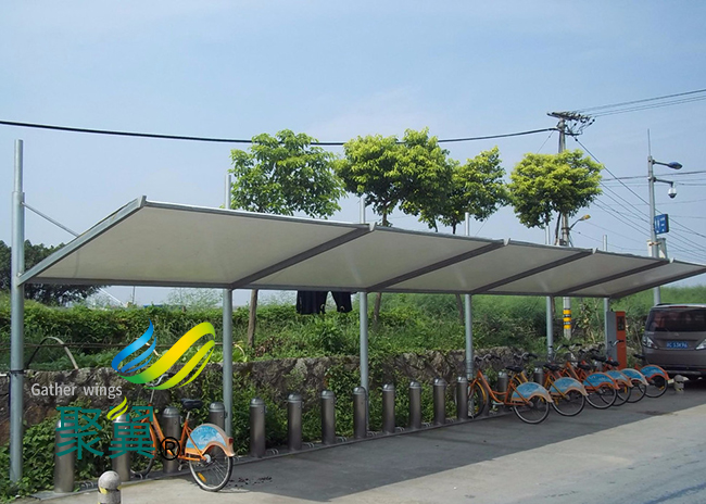 園林景觀膜結構車棚不僅為人們提供遮陽避雨的空間,同時,更由于這種生動活潑的造型能給人們帶來時尚、輕松的休閑感受,所以廣受歡迎。