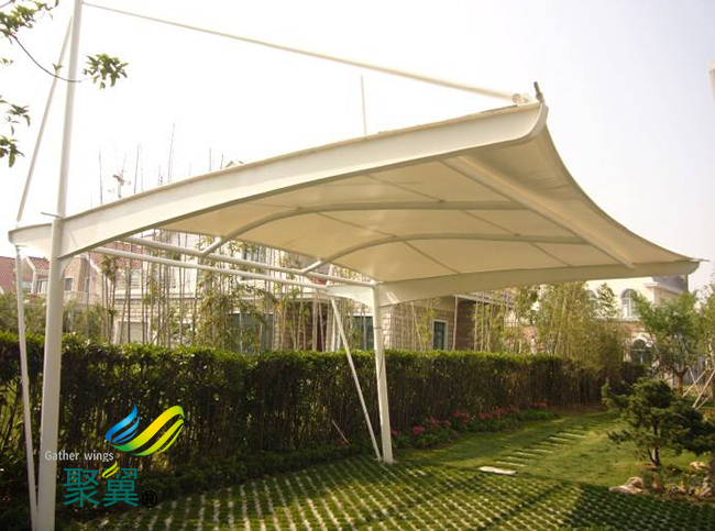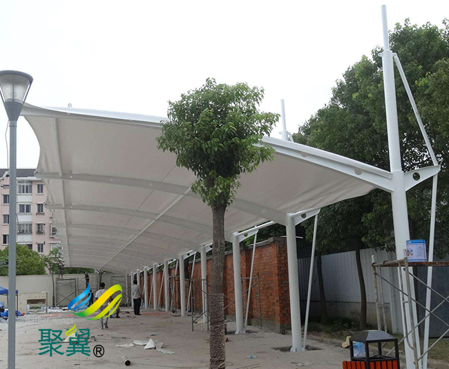 這種產品的首要要求就是耐用穩固,膜結構車棚都是鋼構支撐柱,然后其上進行焊接等工藝加裝膜結構車棚膜材料頂棚。