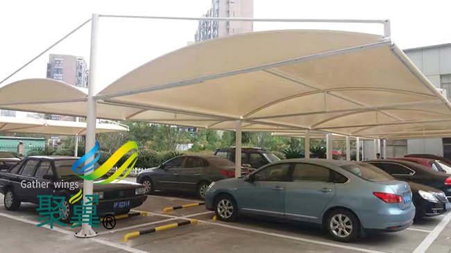 膜結構車棚作為一種能提供給車輛停泊的地方,使車輛避免了直接面對風吹雨打。用來保證自行車,汽車等在車棚下不受損傷。在膜結構車棚未出現之前,市場主要的是鐵制車棚,鋁合金車棚,彩鋼車棚等。