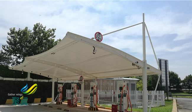 膜結構車棚外型多變;膜材的支撐結構和柔性膜結構車棚膜材使修建物外型愈加多元化,新穎漂亮,一起表現結構之美,表明且顏色豐厚,可發明更自在的膜結構車棚修建形體和更豐厚的修建言語。