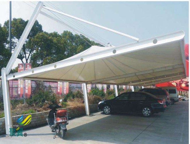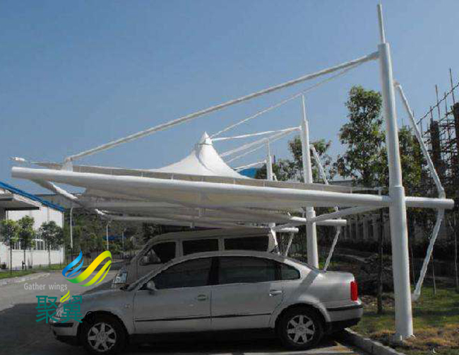 膜結構車棚施工周期較短,和傳統的停車棚相比,膜結構停車棚的施工工期更加短,因為它的所用加工、制作工程都是在工廠內設計完成的,在現場只需要安裝一下即可。