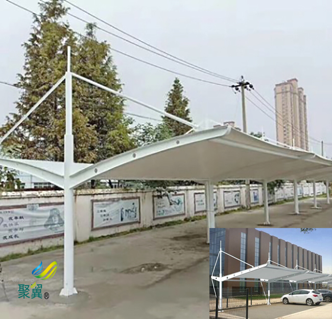 膜結構車棚防震性是眾所周知的,并且膜結構的裝置快捷、造型優美、施工周期短、曲面多變性,膜結構車棚的變形才能和擴張性導致抗震功能比傳統車棚強一萬倍之多,這也和膜結構車棚的結構組成分不開的。