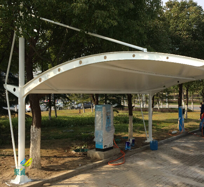 很多制造商在搭建停車棚的時分,經過設計特殊的 膜結構車棚部件構造,讓膜結構車棚的部件在裝置的時分,只需求簡單地拼接就可以完成組裝的目的,而且在膜結構車棚組裝之后仍能表現出很強的鞏固性和美觀性。