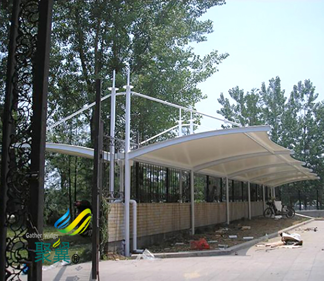膜結(jié)構(gòu)車(chē)棚具有極好的透光效果,透光率可達(dá)30%,而其他類(lèi)型的產(chǎn)品一般來(lái)說(shuō)透光率可以說(shuō)是極差的存在,致使車(chē)棚會(huì)因?yàn)殚L(zhǎng)期暴曬二變黃損害,而膜結(jié)構(gòu)透光率就確保了不會(huì)出現(xiàn)這樣的問(wèn)題,從側(cè)面可以看出膜構(gòu)造的車(chē)棚使用的壽命要更加的長(zhǎng)久。