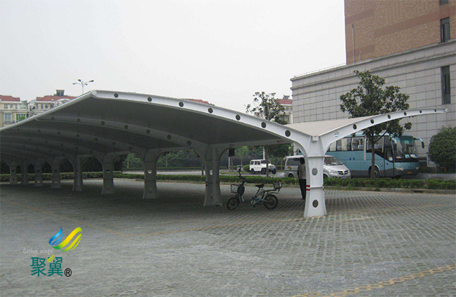 設備的需要是:設備結束時,膜結構車棚板材仍是可以在支架上纖細位移,而不影響填充材料與板材或支架的聯絡。因此填充材料需要一定的粘著力和柔韌性。
