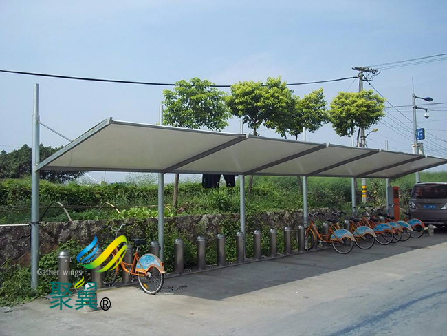 膜結構車棚以其造型輕巧,多變美觀等特點已然成為現如今建筑領域里的新寵,可以說我們的生活周圍處處蕩漾著膜結構車棚所帶來的溫馨氣息。膜結構車棚的安全,環保,阻燃等特性已經令其成為當代城市建筑材料的首選,而膜結構車棚也被稱為二十一世紀的時尚建筑。