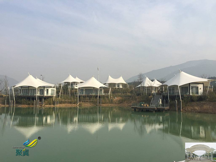 3.張拉膜傘景觀棚工期短:膜建筑工程中所有加工和制作均在工廠內完成,可減少現場施工時間,避免出現施工交叉,相對傳統建筑工程工期較短。