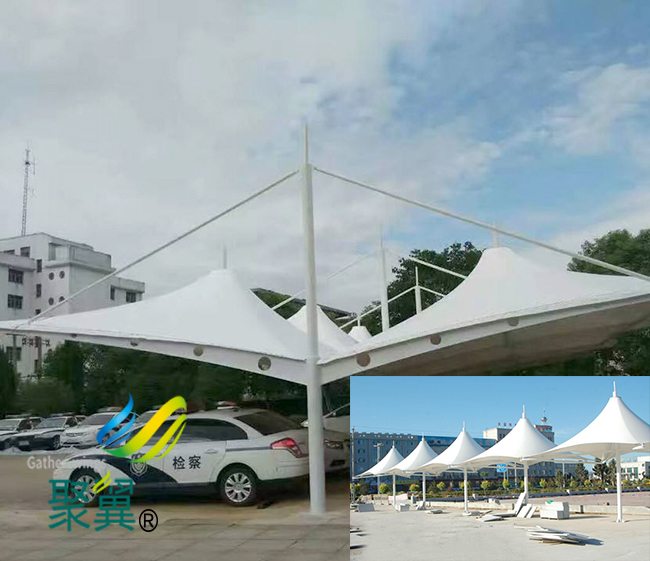 膜結構車棚具有極好的透光效果,透光率可達30%,而其他類型的產品一般來說透光率可以說是極差的存在,致使膜結構車棚會因為長期暴曬二變黃損害,而膜結構車棚透光率就確保了不會出現這樣的問題,從側面可以看出膜構造的膜結構車棚使用的壽命要更加的長久。