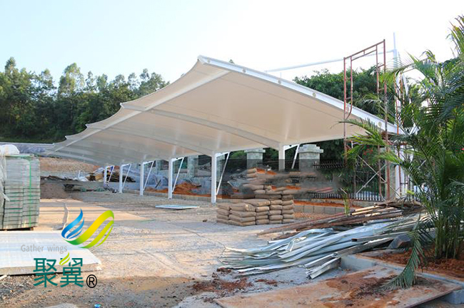 • 膜結構車棚設計排水|膜結構車棚外觀油漆處理