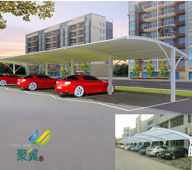 膜結構車棚不僅可以作為居住區和娛樂活動的寫生,滿足人們戶外活動的需要,而且與城市景觀等不同類型的景觀結合,可以達到不同的景觀效果。