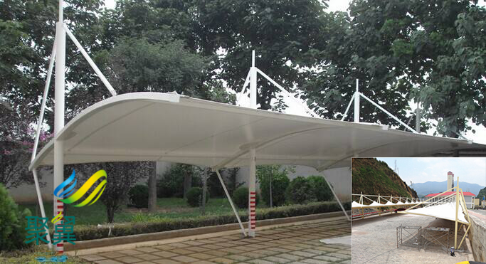 膜結構的車棚可以幫您辦到。膜結構車棚可以給您的愛車更多愛護,使您的愛車擁有更長壽命。而且有的膜結構車棚采用了永久性的膜材,使用壽命可以達到三、四十年。