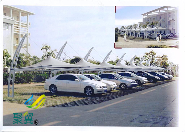 膜結構車棚中使用的膜材料由基底和涂層組成。基材主要由聚氯乙烯和聚四氟乙烯組成。膜結構車棚所用的膜材料是具有輕質、高強、阻燃、耐久、隔音、隔熱、膜結構車棚自潔等特點的高強度復合材料。