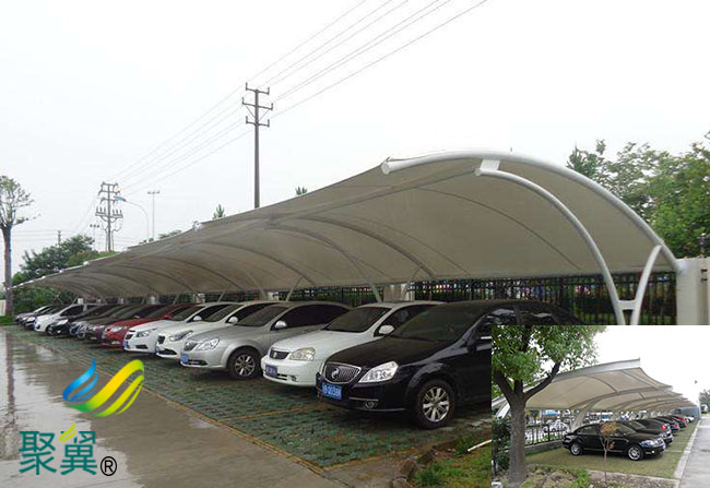 天津市河東區膜結構車棚本身是依靠膜自身的張拉應力與支撐桿和拉索共同構成的體系,此結構特別適合用來建造城市標志性建筑物,如體育與娛樂性場館,廣告效應的商場、餐廳、城市的命脈的關鍵性建筑,天津市河東區膜結構車棚這時新型膜材用于此可以體現出更好的益處。