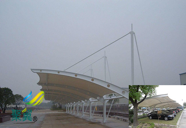 5、當膜面出現破損時,根據破損程度安排及時修補或者替換,避免破損面積變大,影響河北省晉州市膜結構車棚整體結構穩定性。小編從以上設計、加工、安裝、維護四個方面為大家詳細的介紹了影響膜結構車棚質量的因素,希望這篇文章對大家有所幫助,車棚雖然是一種簡單的膜結構設施,但是其也需要專業的設計,充足的用料,嚴格的施工,精心的維護,只有這樣才能擁有一個質量過硬、使用持久的河北省晉州市膜結構車棚,當然如果您不想重蹈開頭提到的這位客戶的覆轍,那么直接選擇聚翼是最正確的決定,我們做過的河北省晉州市膜結構車棚案例遍布大江南北,客戶都非常滿意,也從來沒出現過被雨雪壓塌的情況,歡迎隨時大家咨詢。