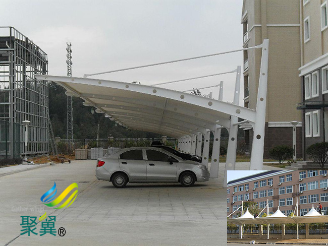 因此膜結(jié)構(gòu)在行業(yè)內(nèi)有“不破玻璃”的稱號。同時成本只有其它結(jié)構(gòu)車棚的一半或者更少。 藝術(shù)性:內(nèi)蒙古錫林郭勒盟太仆寺旗膜結(jié)構(gòu)車棚|最值得一提的是它可以根據(jù)支撐構(gòu)件的位置和高低排列組成不同的形狀,這在金屬車棚上是無法想象的。如在內(nèi)蒙古錫林郭勒盟太仆寺旗膜結(jié)構(gòu)車棚頂部通過拉伸索,使膜結(jié)構(gòu)布邊沿向上翻起。這要是在彩鋼上只能通過對彩鋼板進行預(yù)熱加工才行,需要耗費極大的代價。