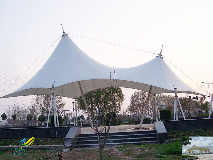 張拉膜結(jié)構(gòu)是通過給膜材及加勁索施加預(yù)張力使之具有剛度并承擔(dān)外荷載的結(jié)構(gòu)"又稱之為索- 膜結(jié)構(gòu)。 張拉膜結(jié)構(gòu)可分為邊界直接張拉成型和通過支撐、懸掛等成型兩種。張拉膜結(jié)構(gòu)有如下特點(diǎn);造型活潑優(yōu)美"富有時(shí)代氣息,自重輕"適合大跨度的建筑,可充分利用自然光"減少能源消耗,造價(jià)相對(duì)低廉"施工速度快,結(jié)構(gòu)抗震性能好"使用范圍廣。 因此在由)( 世紀(jì)( 年代產(chǎn)生至今得到了迅速發(fā)展"目前已廣泛應(yīng)用于體育場(chǎng)館、展廳、娛樂場(chǎng)館、旅游設(shè)施等。年建造的深圳歡樂谷表演場(chǎng)" 它是我國(guó)建造的比較具有代表性的張拉膜結(jié)構(gòu)。