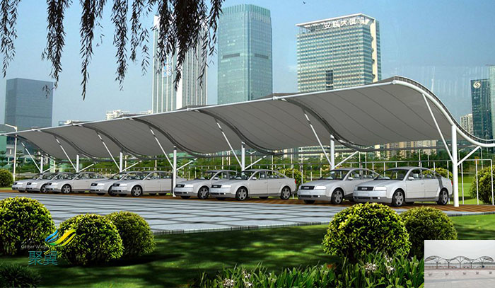 膜結構車棚本身質量輕,防凍/防震特性好,無須應用內部支撐板,減少了民居建筑構造在大跨距建設項目上所碰到的難點,能夠轉化成極大的無遮擋空間,十分合理提升了空間具體套內建筑面積,因此車棚現階段也較為普遍應用膜結構來修建。
