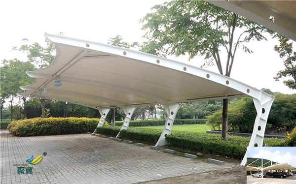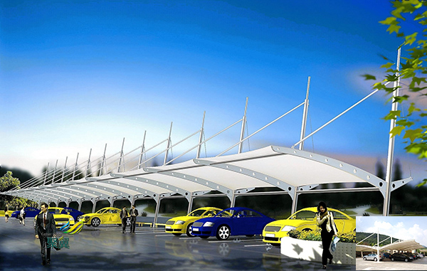 膜結構戶外汽車停車車棚膜結構建筑中所使用的膜材料很輕,每平方米的重量只有1公斤左右。因此膜結構可以從根本上克服傳統結構在無柱大跨度建筑上所遇到的困難,可以創造出巨大的無柱大空間。