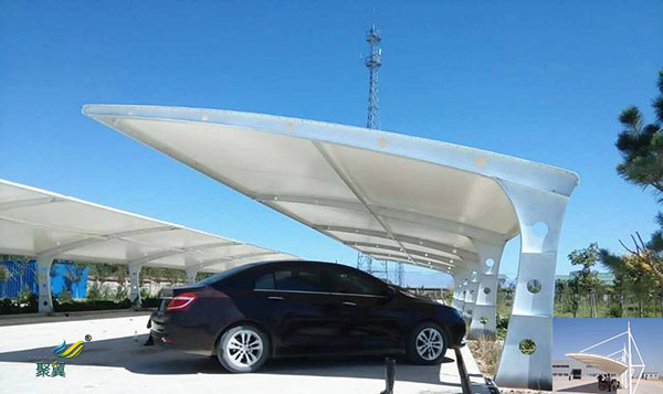 膜結構汽車充電樁停車棚耐溫性:在攝氏-40℃至+120℃溫度范圍內不會引起變形等品質劣化。