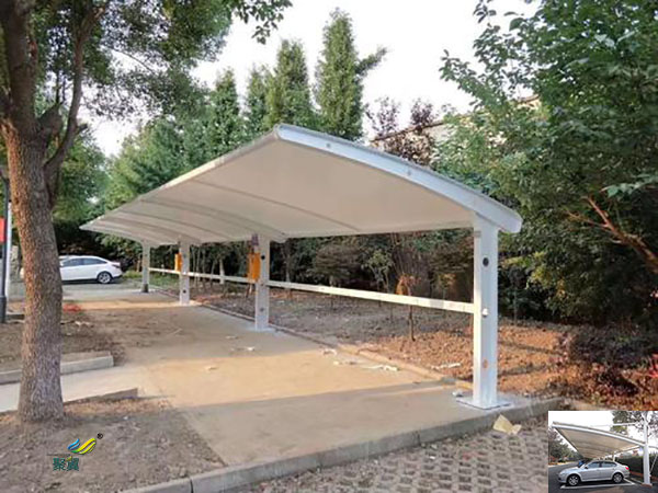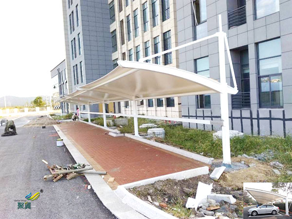第四、自由獨(dú)特的造型,膜結(jié)構(gòu)車棚造型多變,能夠適應(yīng)不同風(fēng)格建筑,更加新穎美觀,而且膜材料的色彩豐富、鮮艷,視覺效果非常好。相對于傳統(tǒng)車棚,它的美觀特性更是得到了充分的展現(xiàn)。