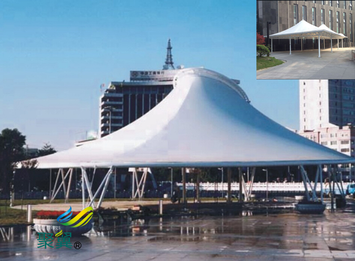 膜結構車棚具有良好的受力特點——成為大跨度空間結構的主要形式之一。膜結構輕巧、別致的造型在停車場及候車廳的建設中擔當了重要角色,除了滿足防風雨、防日曬等基本功能外,并有較好的標識招攬效果,展現了人們個性化的一面。