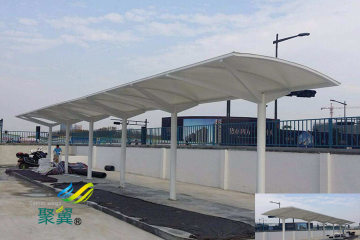 上海聚翼膜結構車棚有限公司專業從事膜結構、景觀膜、停車棚、膜結構車棚、公園膜、張拉膜、游泳池膜結構、膜結構小品、膜結構看臺、污水廠膜結構蓋、膜結構車棚工程建筑全方位服務,系統引進國外先進膜結構技術,并集膜結構車棚膜材料及膜結構形式的研究開發、膜結構建筑的規劃、方案設計、理論分析、結構計算、加工制作、施工解析、施工安裝、維護管理于一體。