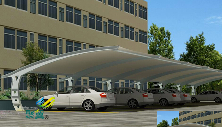 常用建筑膜結構車棚膜材的外觀為PVDF資料涂層,存在物理服從動搖與良好的自潔效果,膜結構車棚膜外觀粉塵一般環境下雨水可自行沖洗干凈,同時包管建筑的使用壽命。