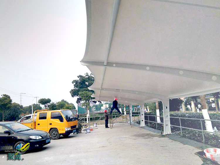 膜結構車棚酸洗磷化處理。這種處理方式一般是將表面出現銹蝕的構件先對其進行酸洗,然后再使用濃度為2%的磷酸進行一步磷化處理,經過這種方式處理的構件表面會生成一層磷化膜,不僅起到膜結構車棚除銹的作用,某種程度上還能有效阻止構件的返繡現象,并且也能增加涂料在其表面的粘著力,增強了膜結構車棚防腐蝕性。