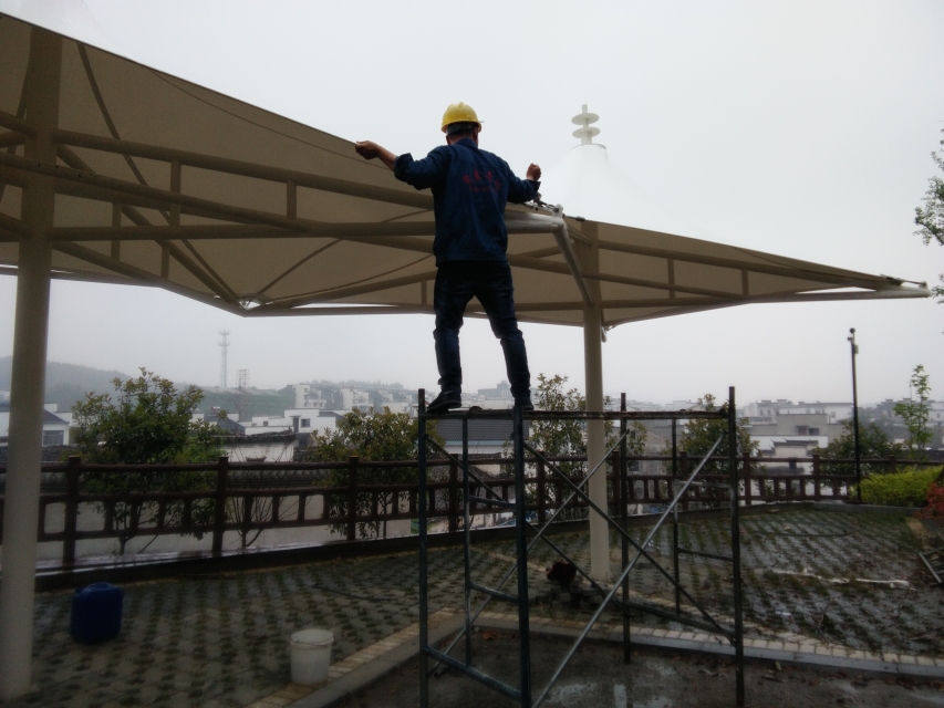 上海浦東膜結構車棚的篷布材質是膜結構,而膜材的最大特點是強度高、耐久性好、防火難燃、自潔性好,不受紫外線影響,使用壽命長,一般15-30年。上海浦東膜結構車棚具有高透光率,透光率為13%,對熱能反射率73%,熱吸收量很少。
