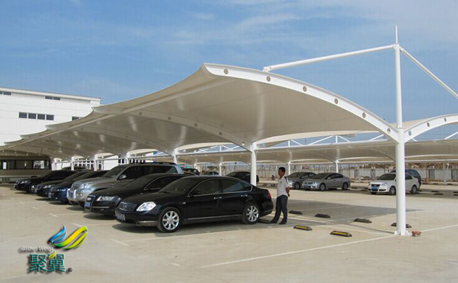 聲學(xué)性能:膜結(jié)構(gòu)車棚的單層膜隔音僅有10dB左右,因此,單層膜結(jié)構(gòu)建筑往往用于對隔音要求不是太高的活動場所。膜體加裝吸音棉或內(nèi)襯采用聲學(xué)結(jié)構(gòu)設(shè)計后,可大大提高其隔音性能。