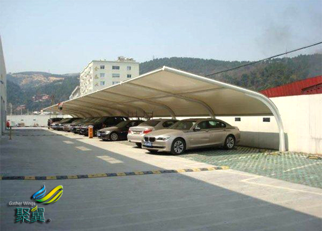 第四點:膜結構車棚美學特征。美學特征雖然主要跟它的外觀分不開關系,但實際上也是會影響停車棚的質量的。因為膜結構表面的弧度是直接跟它的曲率設計分不開關系的,如果曲率設計不合理的話不僅會影響它的外觀特征而且對它的剛度也有一定的影響。