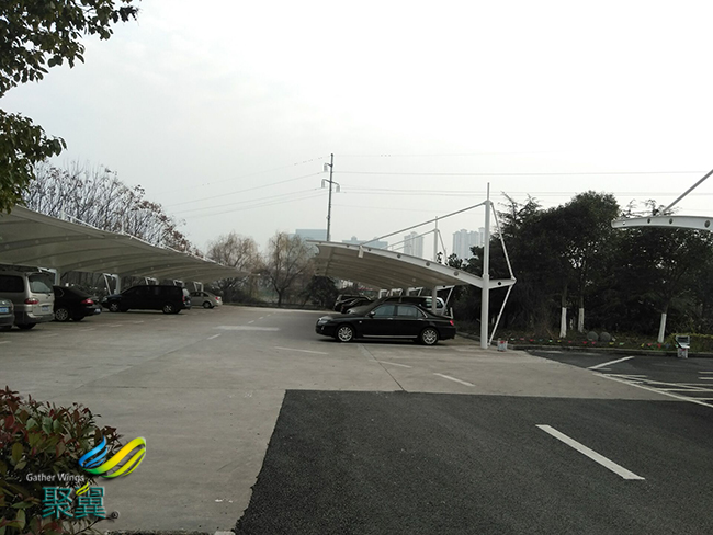 3.預防辦法 1.采用膜構造車棚無保溫隔熱層的多層膜構造多層膜構造的兩層之間的空氣隔離層普通要30cm閣下。  2.膜構造車棚采用有保溫隔熱層的多層膜構造有保溫隔熱層的多層膜構造是在兩層膜之間鋪設保溫隔熱層,構成夾心膜以減緩經過膜面的熱傳導。這種結構使表里層膜間有較年夜的溫差,并可避免內層膜溫度下降到室內結露點以下,從而降低結露的能夠性。