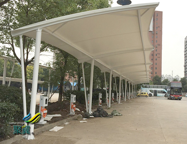 景觀膜結構車棚不僅為人們提供遮陽避雨的空間,同時,更由于這種生動活潑的造型能給人們帶來時尚、輕松的休閑感受,所以廣受歡迎。