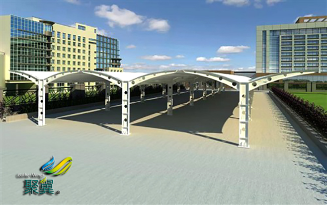 膜結構車棚所耗費的成本比較低,大小相等的建筑,采用膜結構的成本可以縮減二分之一左右,并且整個建筑的周期也會更短,這樣膜結構車棚的經濟性更強。