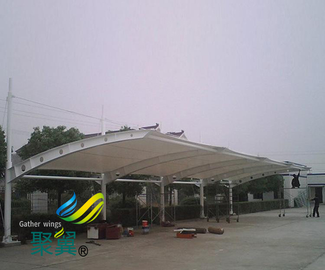 膜結構車棚具有高透光率,透光率為13%,對熱能反射率73%,熱吸收量很少。正是因為這種劃時代的膜結構車棚膜材料的發明,使空間膜結構成為現代化的永久筑。