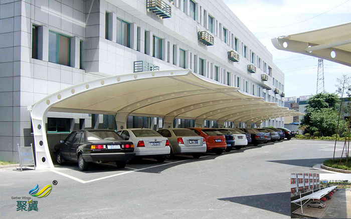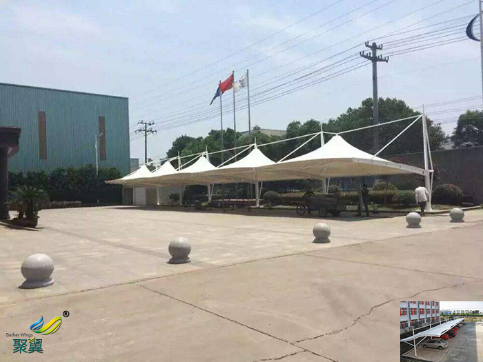 3.膜結(jié)構(gòu)停車棚大跨度。沒有柱子的空間。