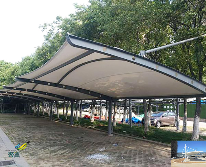 3. 經濟性:研究表明,長期露天停放的車輛,性能損耗速度比車棚內停放車輛快一倍。而采用膜結構雨蓬更能真正呵護您的愛車,減緩您愛車的老化速度。從經濟角度來說,投入不多卻大大延長您座騎的壽命。