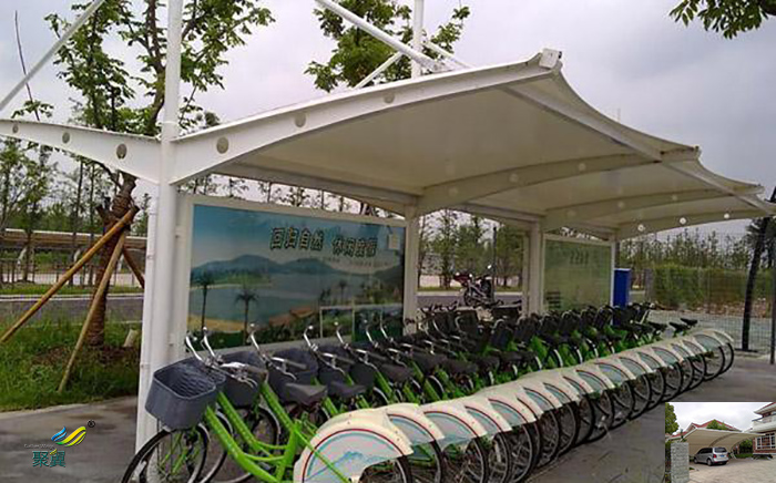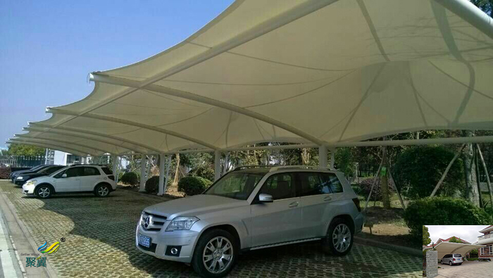 2.膜結構車棚對太陽光具有高反射率和低吸收率,可以靠較小的熱容量抑制太陽能源向結構建筑物內滲透。同時,因其具有半透明的特點,白天不比使用人工照明,實質上可以節省能源成本。