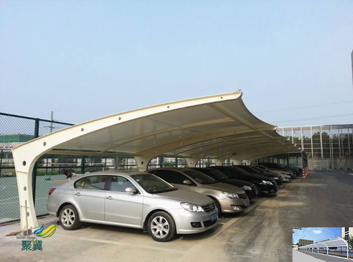 膜結(jié)構(gòu)車(chē)棚的膜面應(yīng)盡量減少可燃物體的靠近。應(yīng)嚴(yán)格按建筑設(shè)計(jì)防火規(guī)范的要求設(shè)置相應(yīng)的消防設(shè)施。施工方盡可能采用不可燃PTFE圖層覆蓋材料。