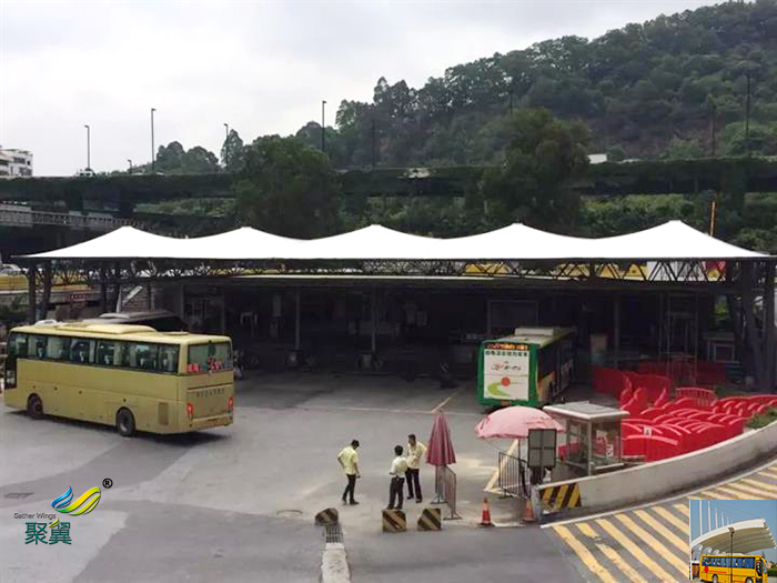 大巴車露天停車棚的規(guī)劃和建設(shè)成為現(xiàn)代城市規(guī)劃的重要組成部分,變的越來越重要。膜結(jié)構(gòu)輕巧、別致的造型在停車場及候車廳的建設(shè)中擔當了重要角色,除了滿足防風雨、防日曬等基本功能外,并有較好的標識招攬效果,展現(xiàn)了人們個性化的一面。