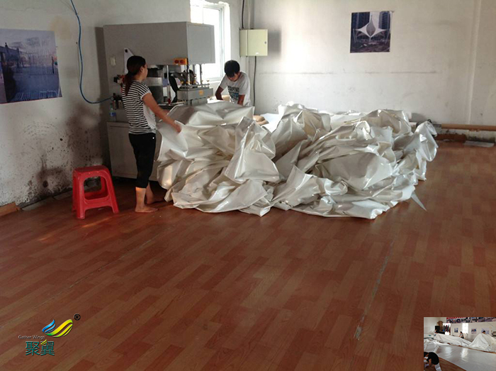 為改良其性能,可在其概況涂一層聚四氟乙烯涂層,增強其抗老化和自潔能力,其壽命可到達15年左右。Teflon材料強度高、彈性模量年夜、自潔、耐久耐火等性能好,但它價格較貴,不容易折疊,對裁剪建造精度要求較年夜,壽命凡是在30年以上,適用在永久建筑。